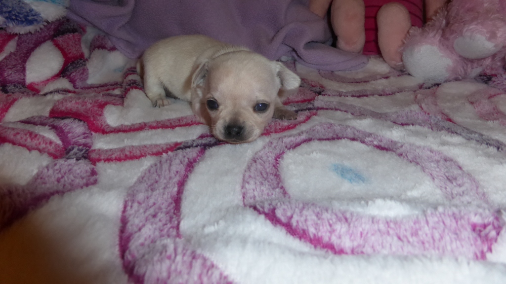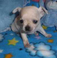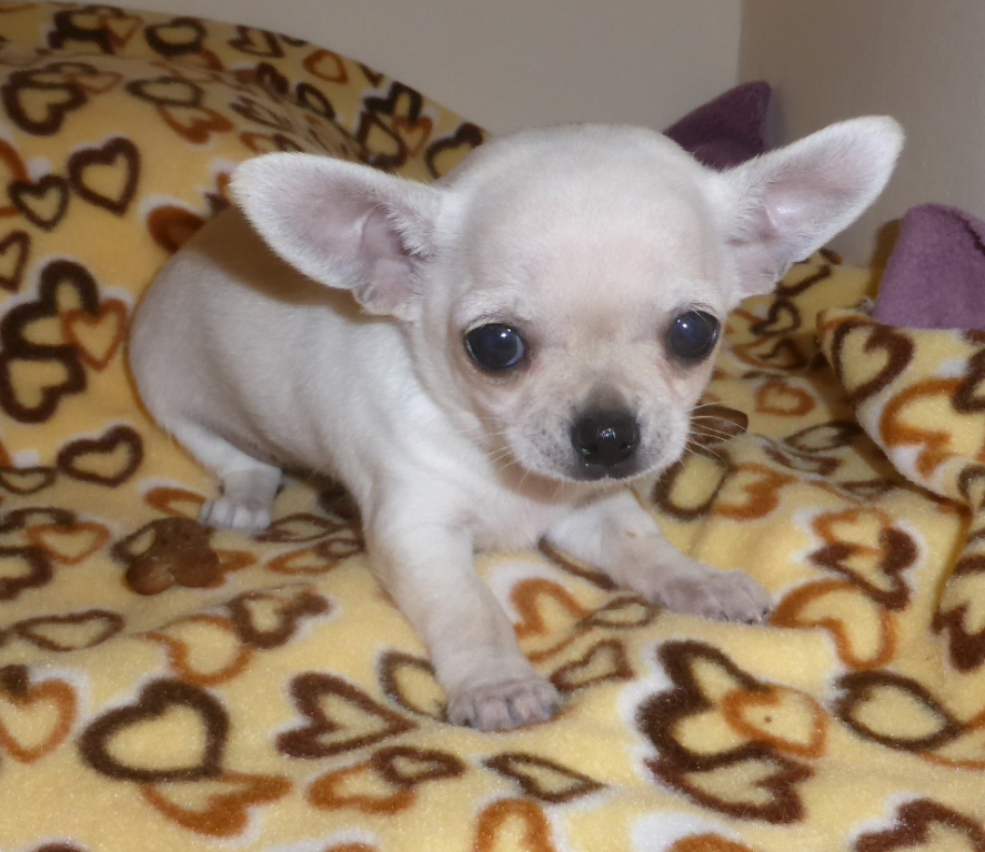 meaning White) KC Reg: Activity Register Breed: Chihuahua (Smooth Coat) Gender: Male Colour: White/Cream DOB: 29/04/2015 (Litter of 3, Self Whelped) Mother: Fawn Father: Blue Fawn