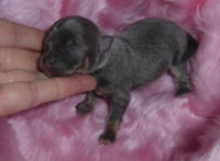 Breed: Chihuahua (Smooth Coat) Kennel Name: SedgysMiniMe Babitta Expected Weight: 2kg KC: Activity Register Gender: Female Colour: Blue & Tan DOB: 03/10/2015 Price: £950 "Dixie Truffles" is Sold to Linsey Ready to Leave December. £150 Deposit will secure. Deposits are non refundable unless there is a problem with the pup before she leaves me. In which case the deposit is either fully refunded or transferred to another pup. I accept Bank Transfer, Cash, Paypal (paypal plus 4% fees), Cheques or Postal Orders (Cleared prior to collection). The deposit is included in the price listed. The pup and parents can be viewed once the pup is 4-5 weeks of age. Price Includes: