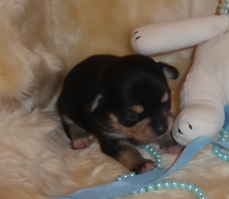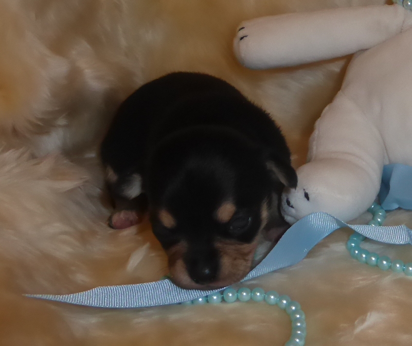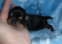 Breed: Chihuahua (Smooth Coat) Kennel Name: SedgysMiniMe Banditt Expected Weight: 2-2.5kg KC: Activity Register Gender: Male Colour: Black Tricolour (Black, Tan & White) DOB: 01/10/2015 Price: £650 "Hugo" is Sold to Karen Ready to Leave December. £150 Deposit will secure. Deposits are non refundable unless there is a problem with the pup before he leaves me. In which case the deposit is either fully refunded or transferred to another pup. I accept Bank Transfer, Cash, Paypal (paypal plus 4% fees), Cheques or Postal Orders (Cleared prior to collection). The deposit is included in the price listed. The pup and parents can be viewed once the pup is 4-5 weeks of age. Price Includes: