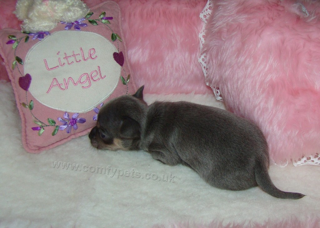 (Venetia meaning "She Brings Joy & Happiness") Blue Tricolour Female Smooth Coat Chihuahua