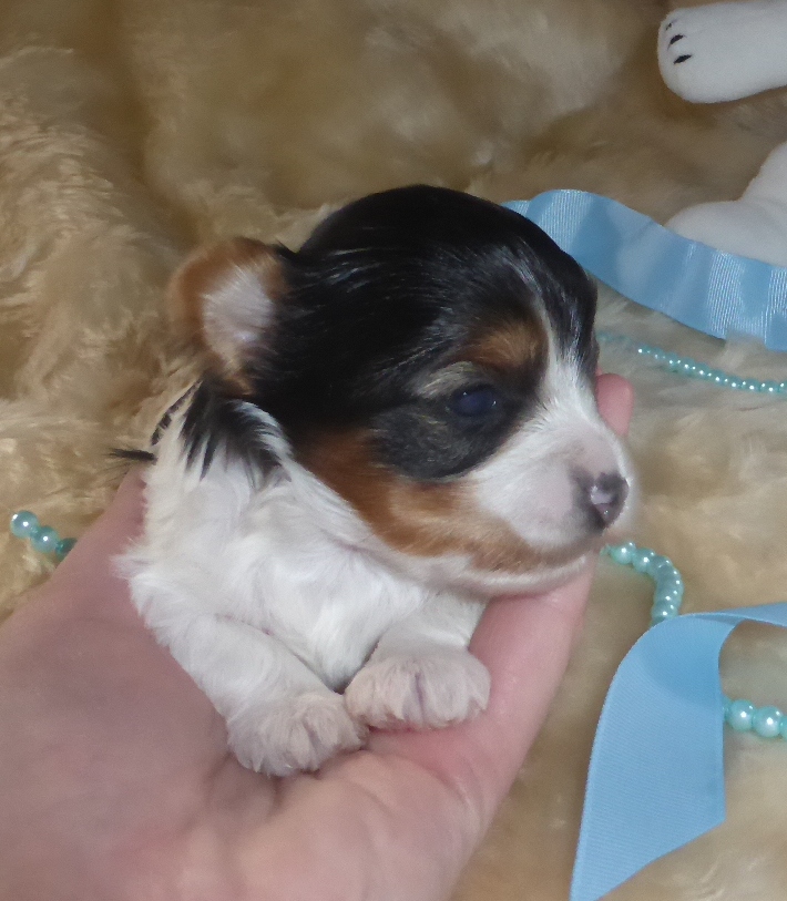 Breed: Biewer Yorkshire Terrier "E" Litter Kennel Name: SedgysMiniMe Elba Expected Weight: 2kg KC: Activity Register Gender: Male Colour: Black, White & Gold DOB: 30/09/2015 |