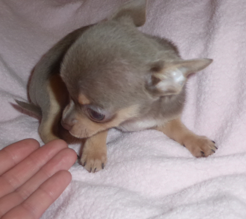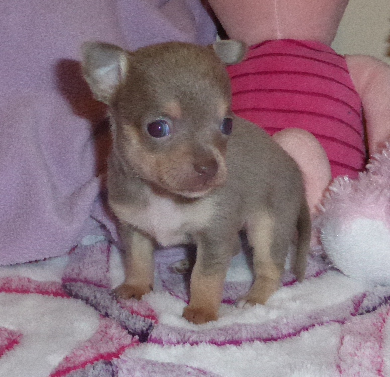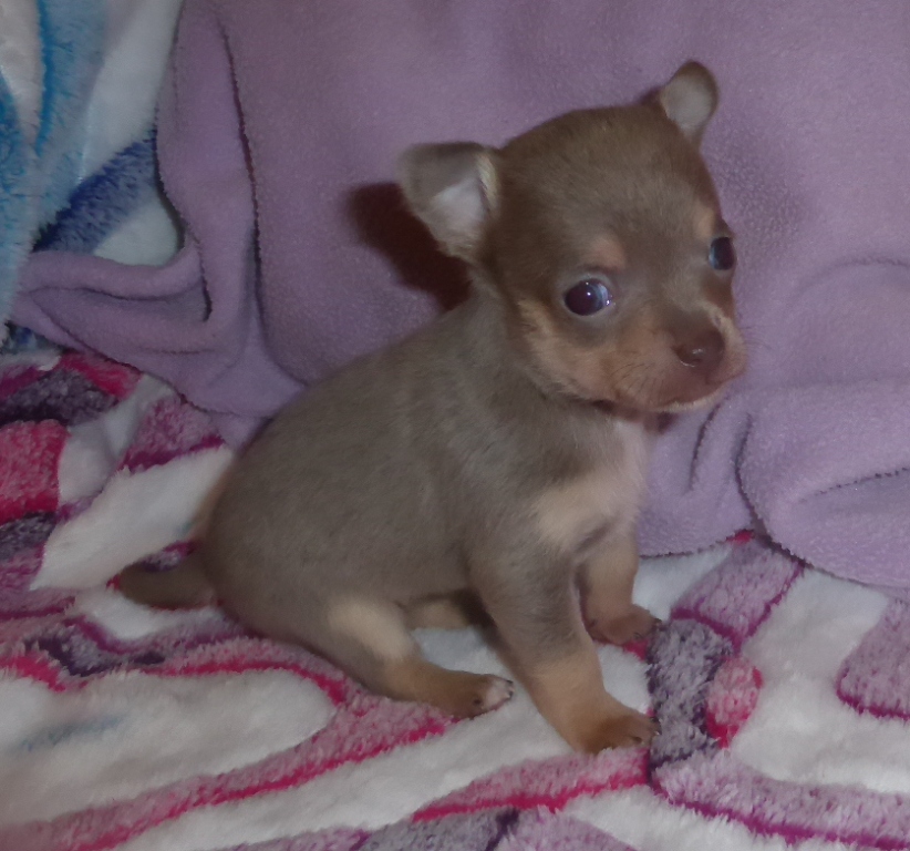 Purple Flower) KC Reg: Activity Register Breed: Chihuahua (Smooth Coat) Gender: Female Colour: Chocolate Tricolour DOB: 19/04/2015 (Litter of 4, Self Whelped) Mother: Chocolate Tricolour Father: White/Cream Price I am also able to provide suitable sized crates, puppy pens, travel crates, washable toilet pads, Personalised super comfy fleece sleeping bag beds etc. at very competitive prices. Please email me if you are interested in Lanthia. It would be helpful when enquiring, if you could also provide some information about yourself & the home-life that you are offering to one of my pups jan@comfypets.co.uk 07535 016 458 All photographs below have been taken by me