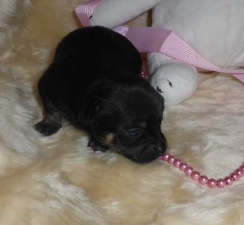 Kennel Name: SedgysMiniMe Sabrina Breed: Chihuahua (Smooth Coat) Expected Weight: 2.0kg KC: Activity Register Gender: Female Colour: Black & Tan DOB: 01/10/2015 Price: £900 "Roxy" is Sold to Keira Ready to Leave December. £150 Deposit will secure. Deposits are non refundable unless there is a problem with the pup before she leaves me. In which case the deposit is either fully refunded or transferred to another pup. I accept Bank Transfer, Cash, Paypal (paypal plus 4% fees), Cheques or Postal Orders (Cleared prior to collection). The deposit is included in the price listed. The pup and parents can be viewed once the pup is 4-5 weeks of age. Price Includes: