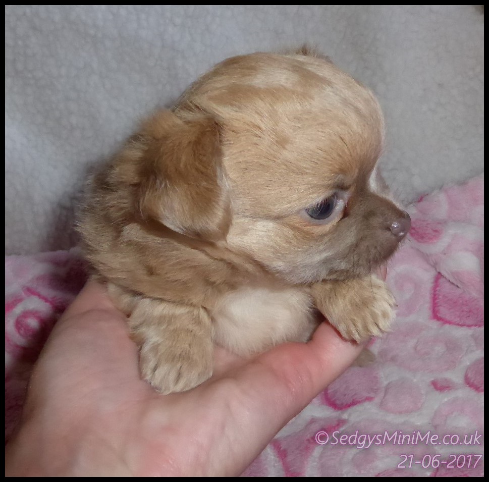 Pet Name: Germaine Breed: Long Coat Chihuahua Gender: Female Colour: Lilac Fawn DOB: 08/05/2017 KC Companion Registration Expected Adult Weight: 2kg Video Clips of all current pups |