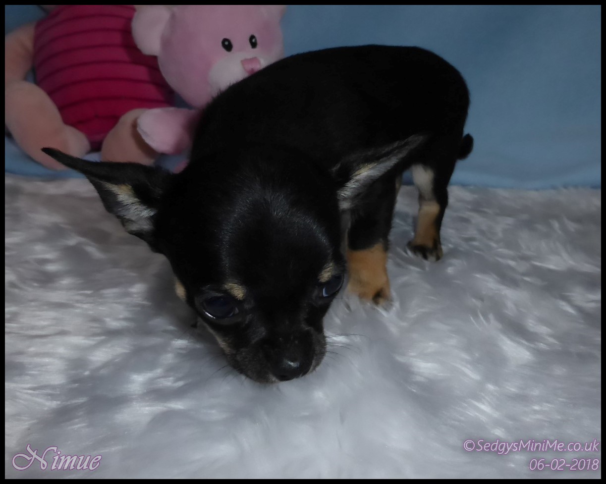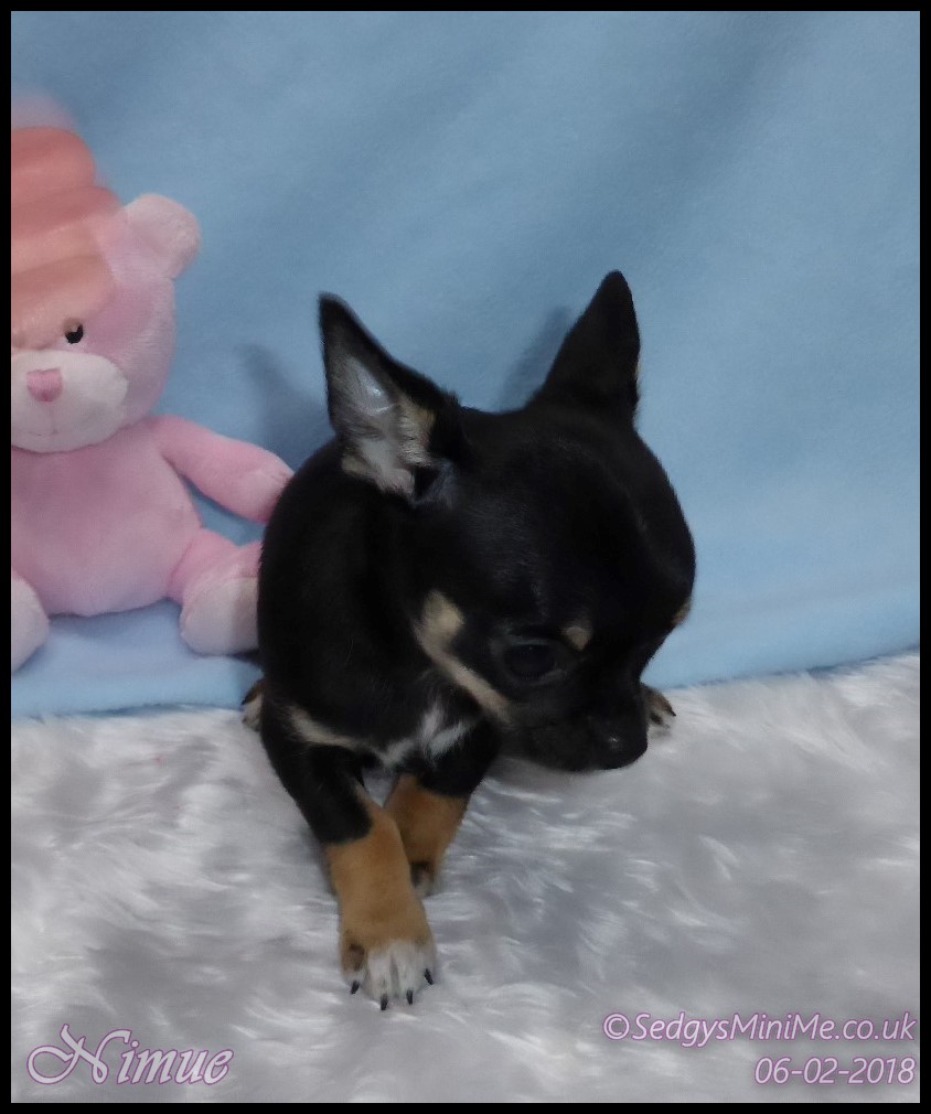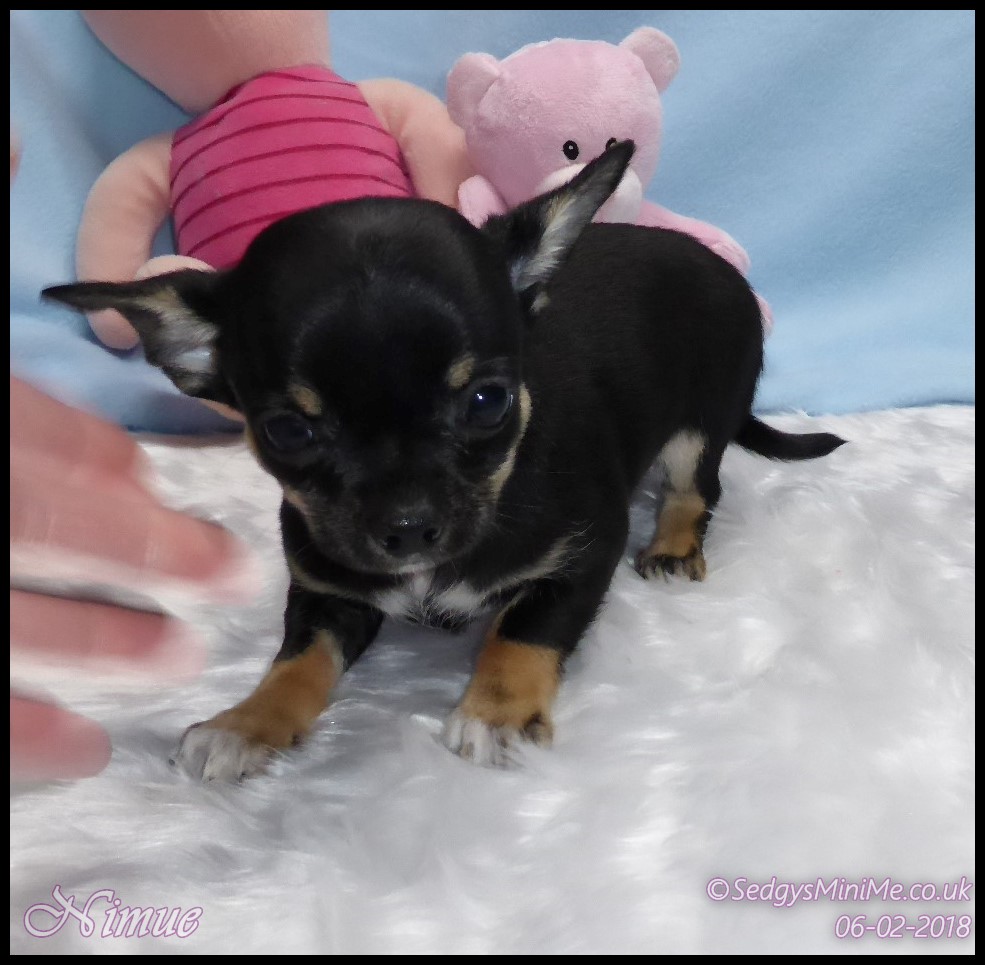 Pet Name: Nimue Breed: Chihuahua Coat: Smooth Gender: Female Colour: Black Tricolour DOB: 13/12/2017 KC Companion Registration Expected Adult Weight: 1.8-2kg Availability: SOLD |